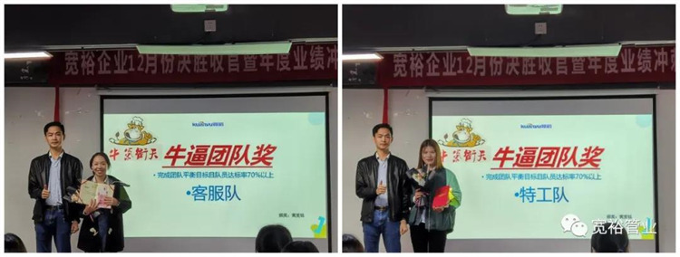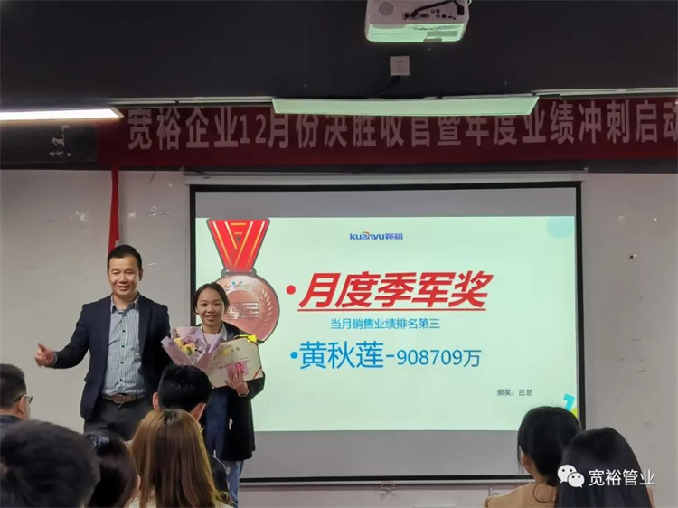 動感滿滿的舞蹈之后正式開啟對12月1-13日的銷售業(yè)績回顧,并對個人銷量前十、團(tuán)隊業(yè)績完成情況、團(tuán)隊PK情況等進(jìn)行了總結(jié)。在過去的13天里,已經(jīng)涌現(xiàn)出了多位優(yōu)秀的將士,他們分別是以100%業(yè)績率先沖刺的00后新生代“小莊”,還有首個拿下本月25萬大單的小斯---從跟單員通過不斷的努力成為優(yōu)秀的銷售工程師。更有通過前期不斷積累了成功開拓經(jīng)驗的來自無敵隊的小黃,12月至今已經(jīng)開發(fā)了6個新客戶,現(xiàn)場更是迎來了“哇塞”的喝彩聲一片!在此小編也僅代表寬裕管業(yè)對各位優(yōu)秀戰(zhàn)士的優(yōu)異成績表示大寫的點贊!你們是最棒的!