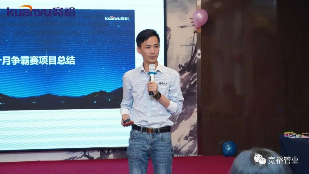 十月份頒獎(jiǎng)結(jié)束后,寬裕管業(yè)集團(tuán)總經(jīng)理黃寬銘先生對(duì)于十月業(yè)績(jī)爭(zhēng)霸賽做出了總結(jié),黃寬銘先生表示到,爭(zhēng)霸賽是一場(chǎng)借假修真的戰(zhàn)役,更是一場(chǎng)武林大會(huì),也告訴了我們稱為武林高手的秘籍。他寄語(yǔ)寬裕人: