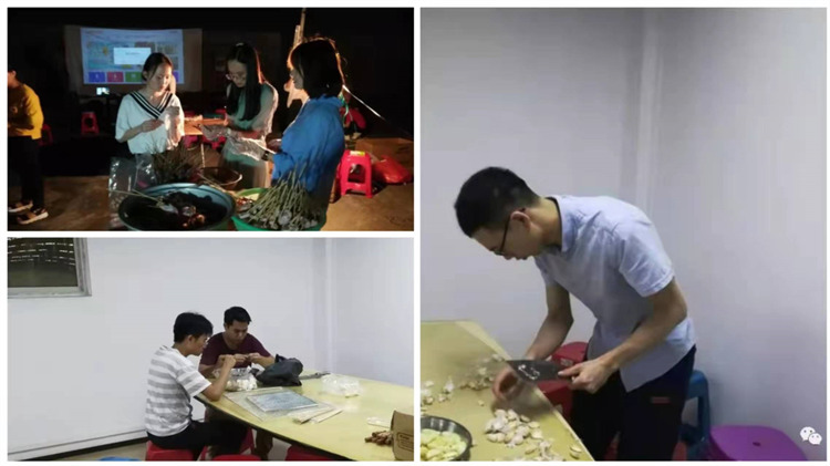為了我們的家人們能早早吃上燒烤,我們下午三點(diǎn)便開始著手準(zhǔn)備,出門購(gòu)買食材,然后做調(diào)味料,穿串子......準(zhǔn)備完畢后,立馬開始了我們的燒烤活動(dòng)。大家一會(huì)兒加炭,一會(huì)兒給食物翻身,一會(huì)兒刷油,一會(huì)兒加調(diào)料……忙得不亦樂乎。